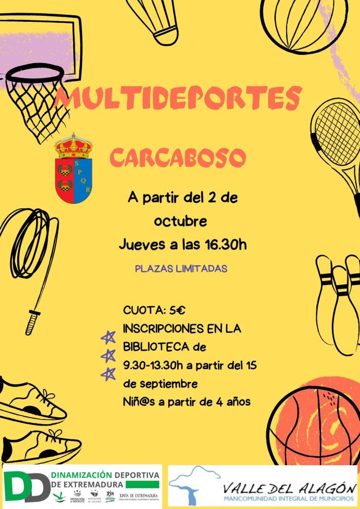 ¡Buenas tardes! Os adjuntamos los carteles con toda la información necesaria para inscribirse en la actividades deportivas para tod@s, que se organizan desde la Mancomunidad Integral de Municipios "Valle del Alagón".